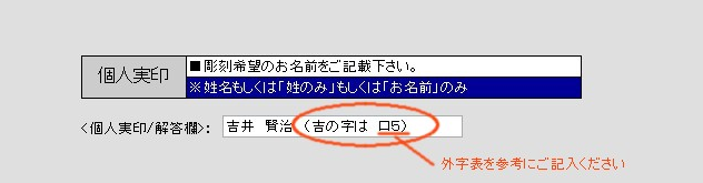 旧字体、異体字等、パソコンから通常入力できないお名前の場合は、このページにございます外字表をご参考にご注文ください。