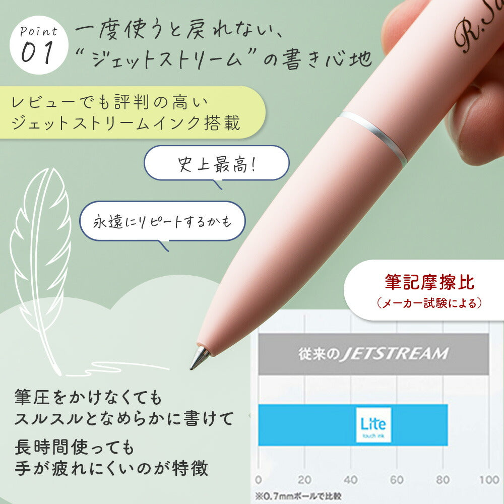【従来のジェットストリームを超えた「さらに軽い」書き心地】 本製品は、従来のインクより筆記抵抗を低減した新開発「ライトタッチインク」を搭載しています。「なめらかさ」はそのままに、より軽い力でインクが出るため、議事録作成や長時間の勉強で2時間以上書き続けても、手首や指先への負担を感じさせません。思考を止めることなく、ペン先が紙の上を滑る感覚を体験してください。