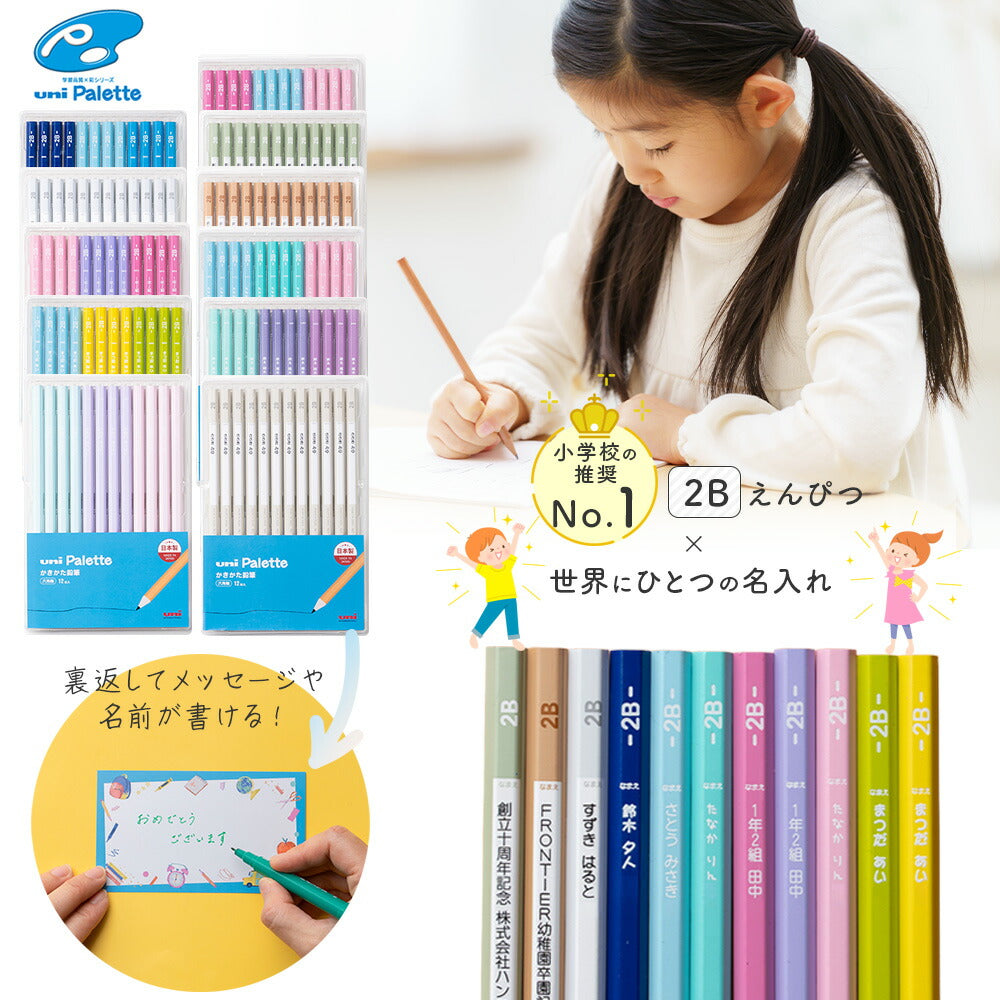 お名前を印刷できるので、学校での紛失や取り違えを防げます。ひらがな、カタカナ、漢字、アルファベットに対応。世界に1つだけの、お子さま専用の鉛筆が作れます。