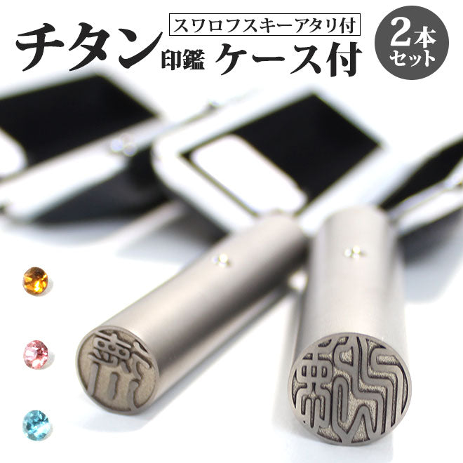 ブラストチタン ブラックもみ皮印鑑ケース付 2本セット アタリ付 ステンレス球 or スワロ付